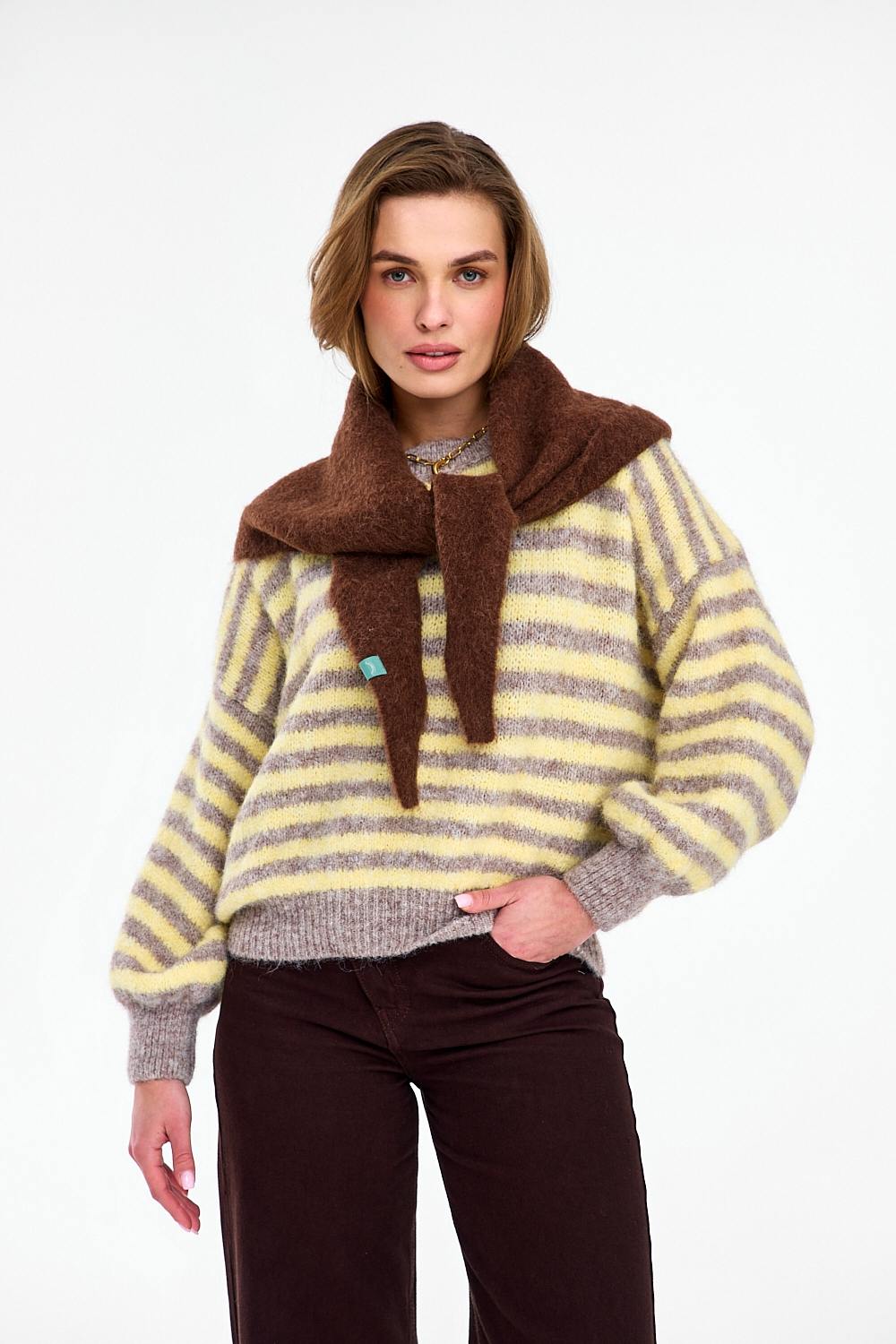 This is a piece that defies boredom. Wear it with simple jeans or leggings to let it take center stage in your outfit. The Banana Split is proof that a warm sweater can also be a fun element of fashion.