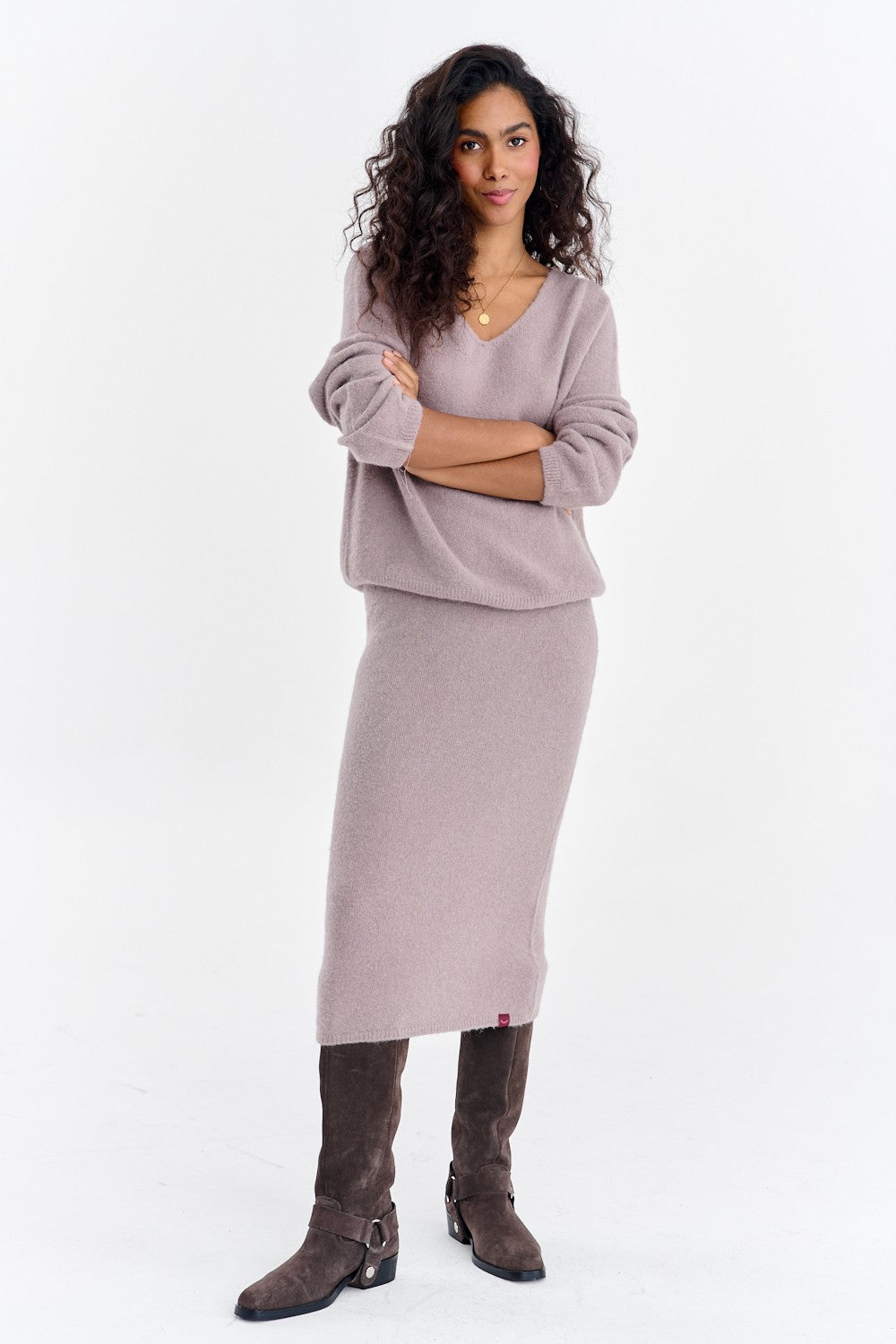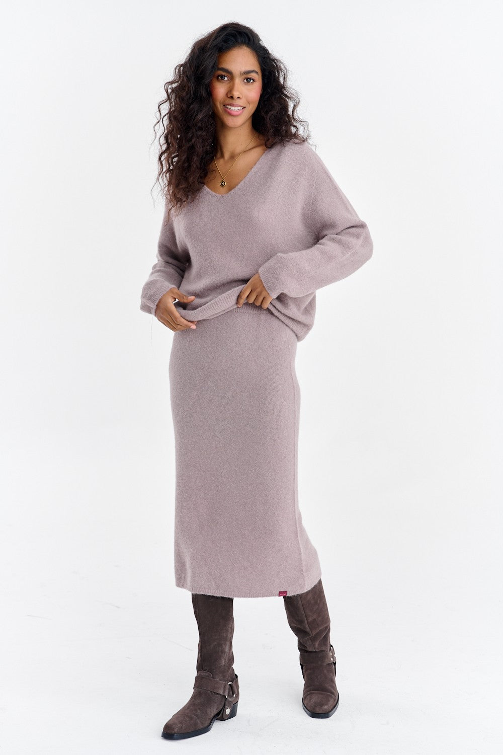 The Calm Story Sweater is the essence of minimalist style and comfort. Made of incredibly soft, skin-friendly knit fabric in a neutral beige shade. The relaxed, oversized cut with slightly dropped shoulders ensures comfort and a casual look.