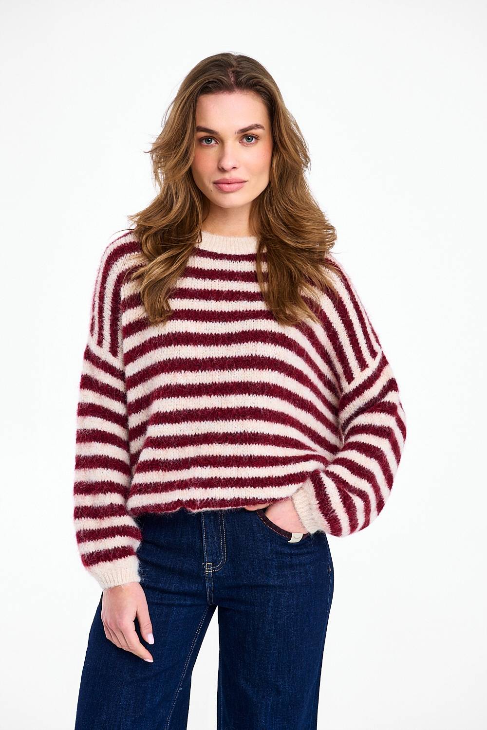 Frosted Wine sweater attracts attention with its unique striped pattern in a deep burgundy shade. This color perfectly complements the fall/winter color palette. The sweater's classic cut makes it incredibly versatile, and the meticulous finishing emphasizes its high quality.