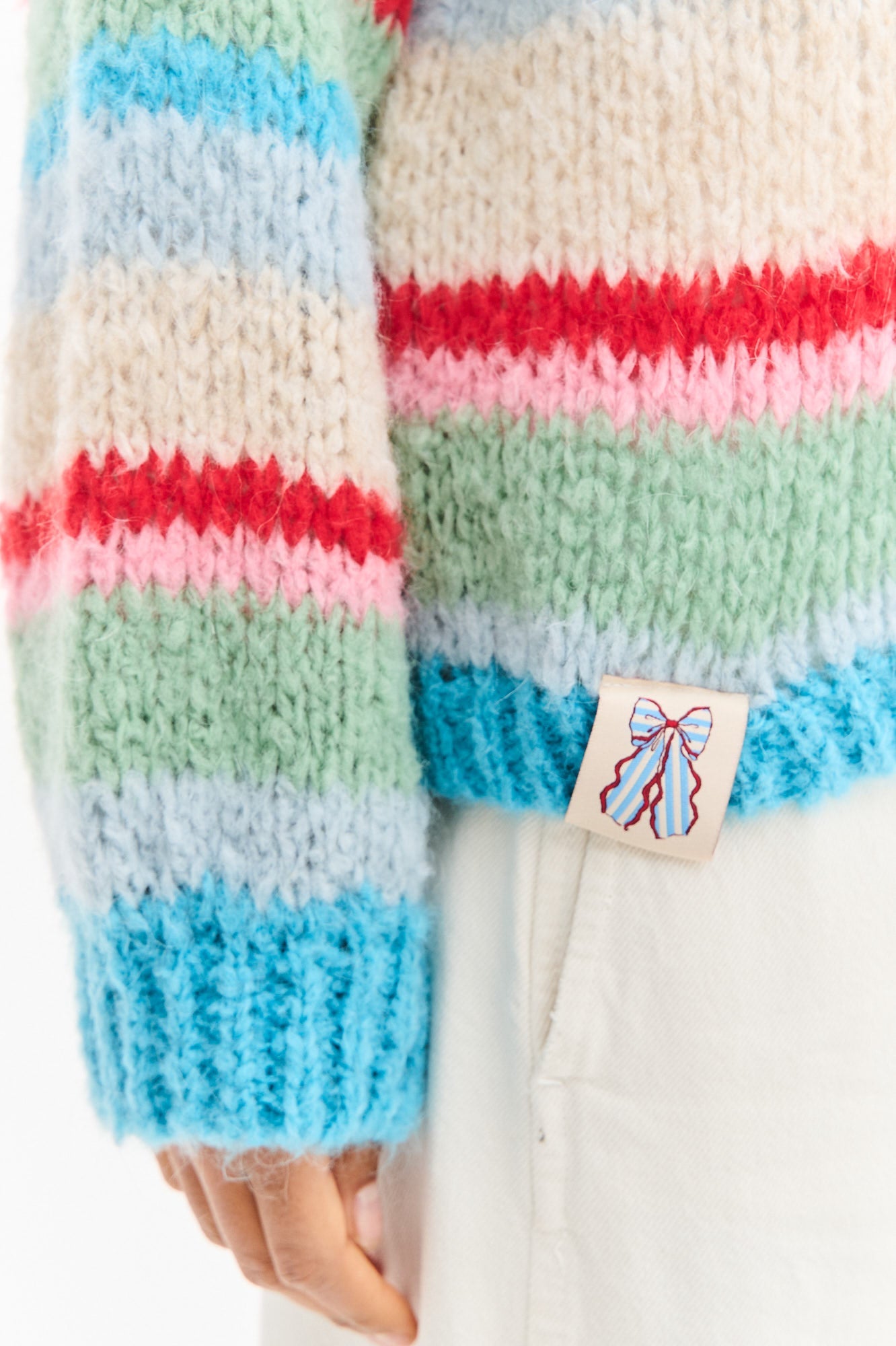 Pure Joy sweater is a real explosion of positive energy. Its design is based on a harmonious combination of joyful colors: pink, red, blue and turquoise. This is a sweater that proves that fashion can be great fun and a way to express yourself.