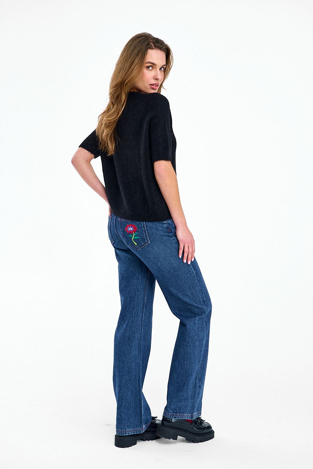 Expect Magic short-sleeved sweater is proof that simplicity can be intriguing. Made from a blend of alpaca and wool, it's incredibly soft and pleasant to the skin. The black color makes it go with everything, and the pink patch with the "Eye in the Cloud" motif adds a dreamlike touch.