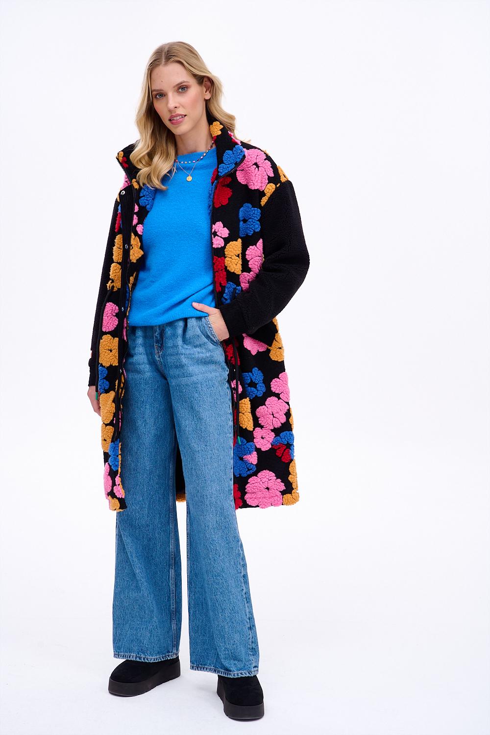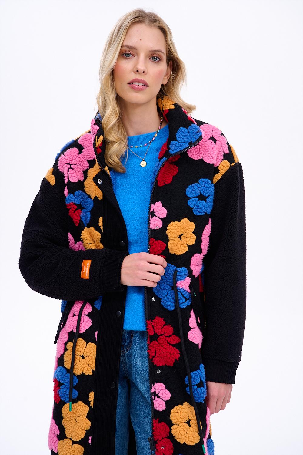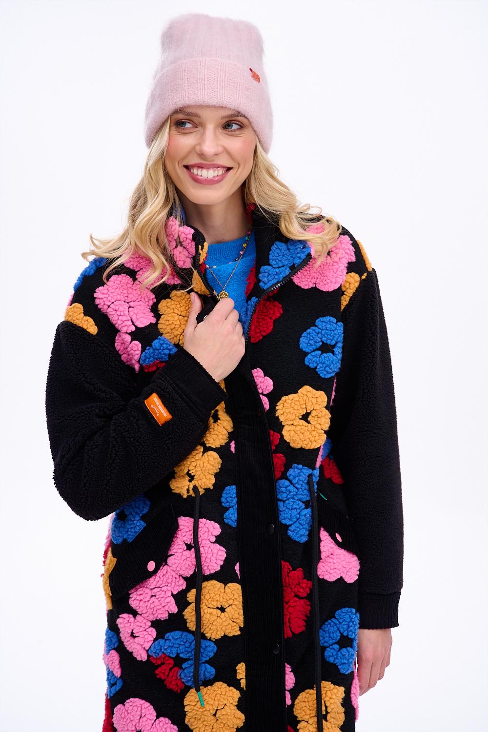 Teddy Floral Dream coat is perfect for all #naokogirls who aren't afraid to turn heads. The bold floral print on a deep black background gives it a unique character, while the contrasting sleeves and details in the form of colorful patches and pockets make every element of this design meaningful.