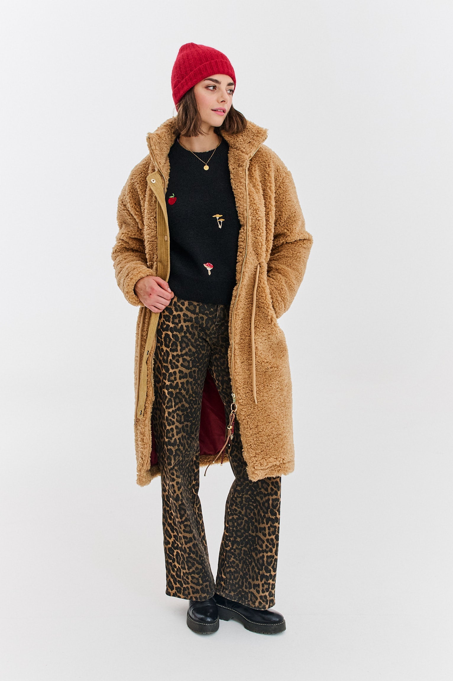 Honey-colored teddy coat