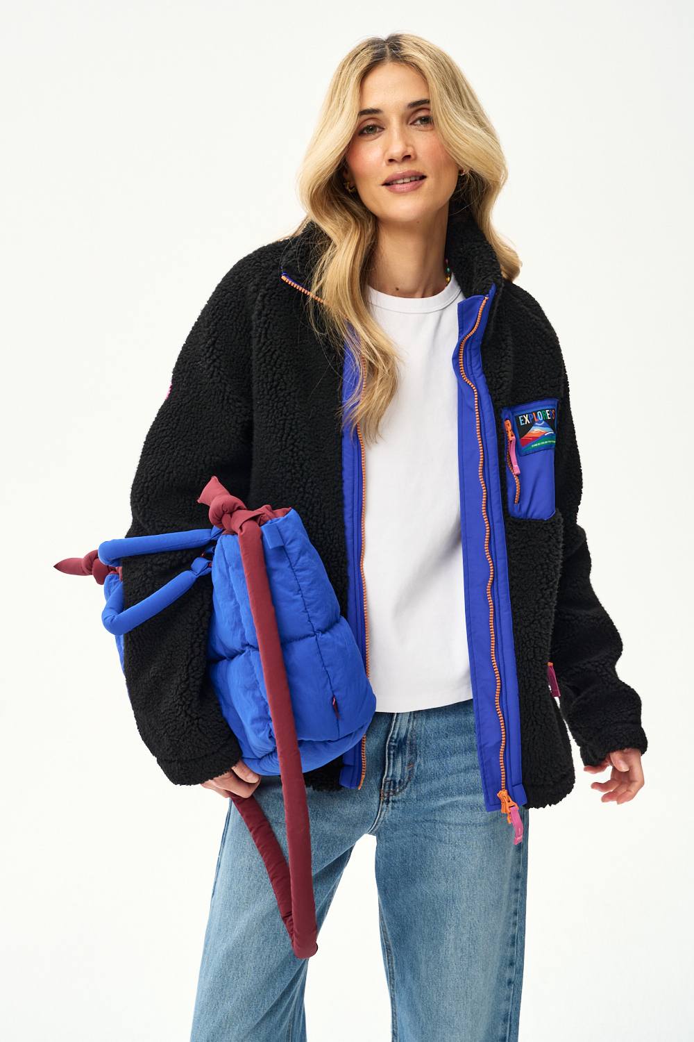 Bunda Adrenaline Teddy dokazuje, že hrejivý materiál môže pôsobiť veľmi dynamicky. Čierny základ je doplnený výrazným modrým lemom na chrbte a neónovým prešívaním. Tento model ťa nabije energiou počas jesenných tréningov vonku.