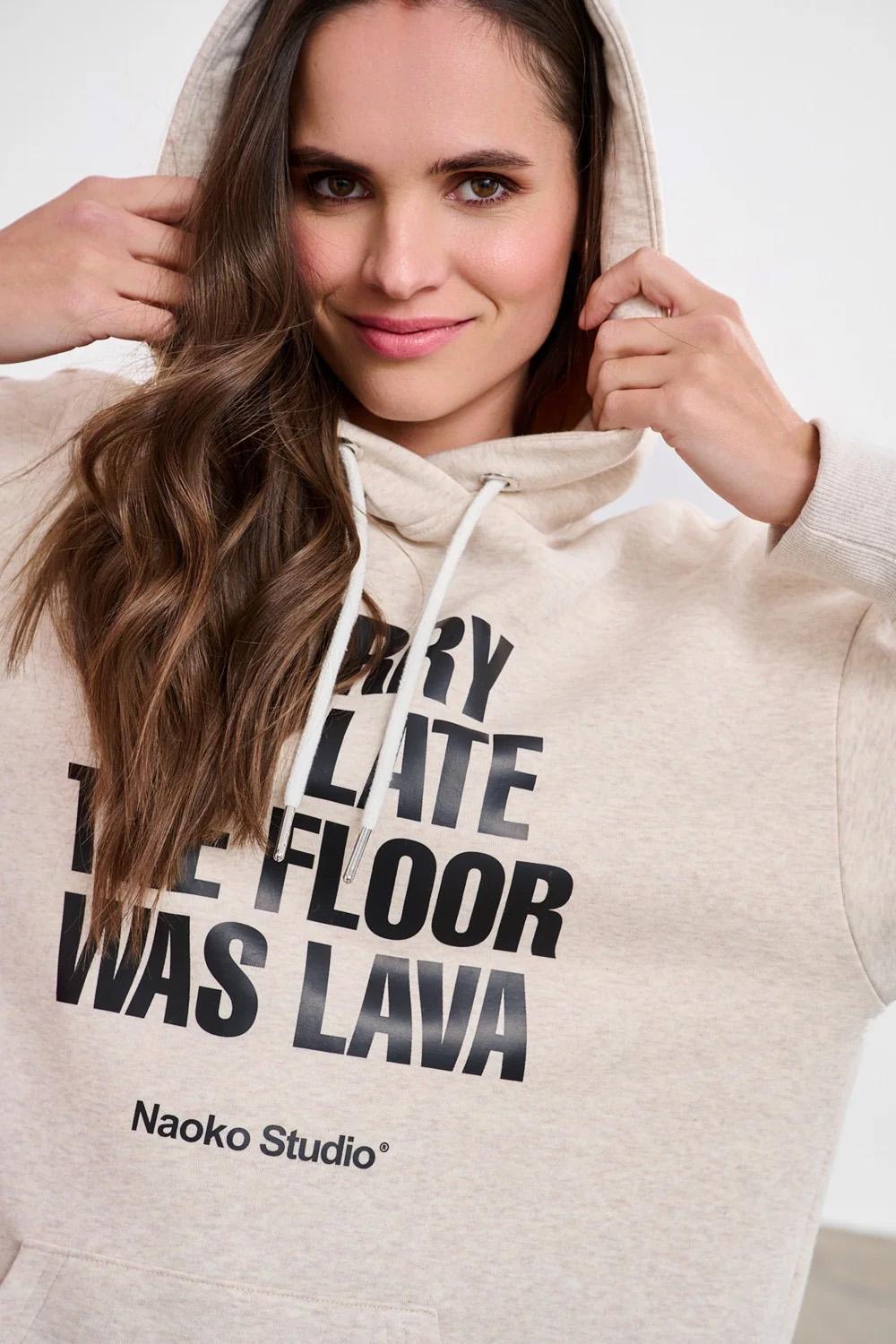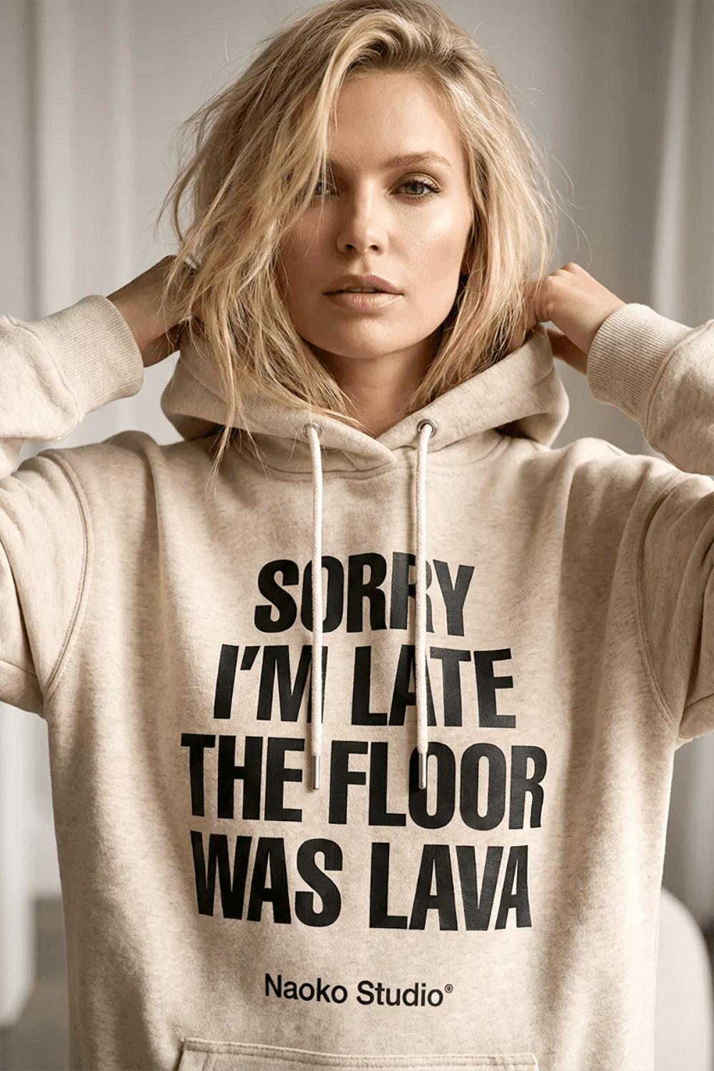 Mikina The Floor is Lava je vtipný návrh. Klasický béžový melírovaný odtieň sa hodí ku všetkému a čierny nápis na prednej strane vyčarí úsmev na tvári každému, koho stretnete. Dlhý, oversize strih zaručuje voľnosť pohybu a maximálne pohodlie.