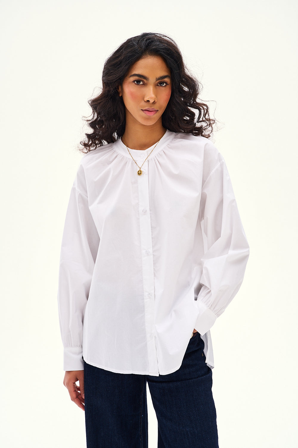 Košeľa Mon Ami je stelesnením francúzskej elegancie s moderným nádychom. Snehobiela bavlna a voľný, ležérny strih zaručujú pohodlie a bezchybný vzhľad po celý deň. Dlhé, nadýchané rukávy s manžetami dodávajú romantický nádych.