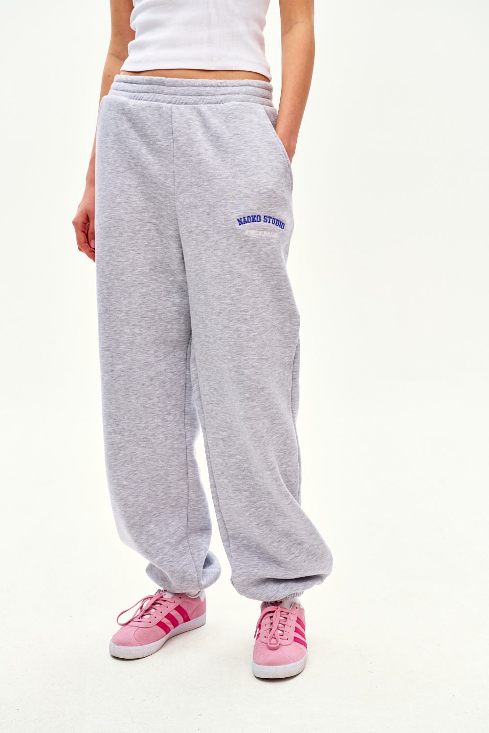 Everyday sweatpants combine functionality and a fashionable cut. Wide legs with cuffs at the bottom and subtle embroidery make you feel comfortable and trendy.