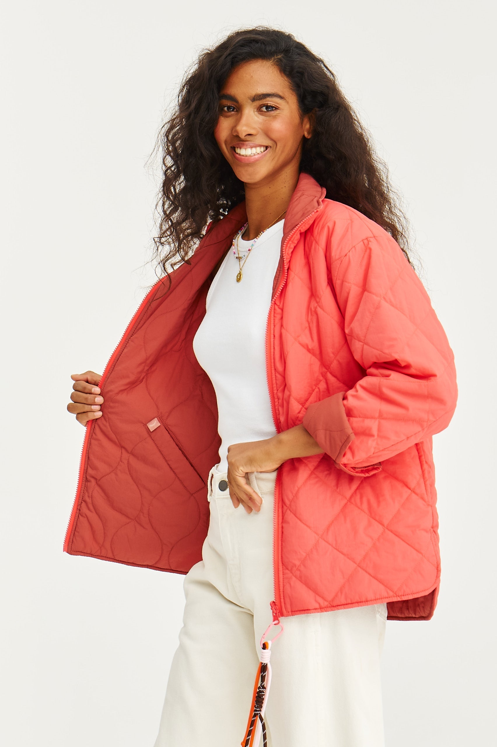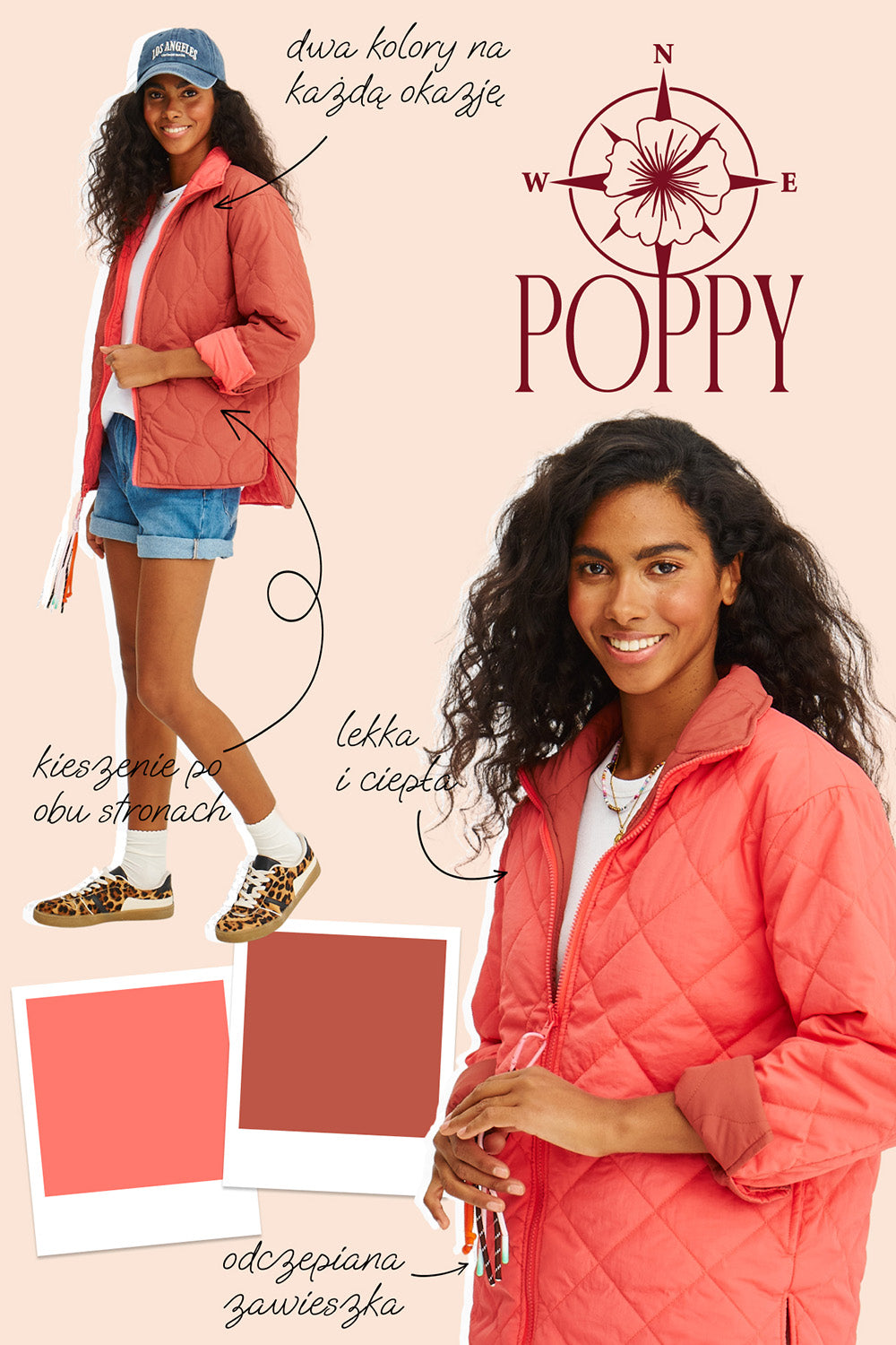 Poppy Choco Mousse obojstranná bunda je dokonalou kombináciou sladkosti a klasiky. Na jednej strane hlboká čokoládovo hnedá s jemnými ružovými akcentmi, na druhej strane koralová energia, ktorá oživí každý outfit. Táto bunda je nielen praktickou voľbou na chladnejšie dni, ale aj módnym vyjadrením pre tých, ktorí sa radi hrajú s farbami.