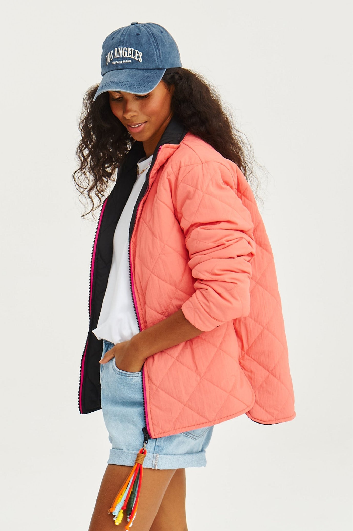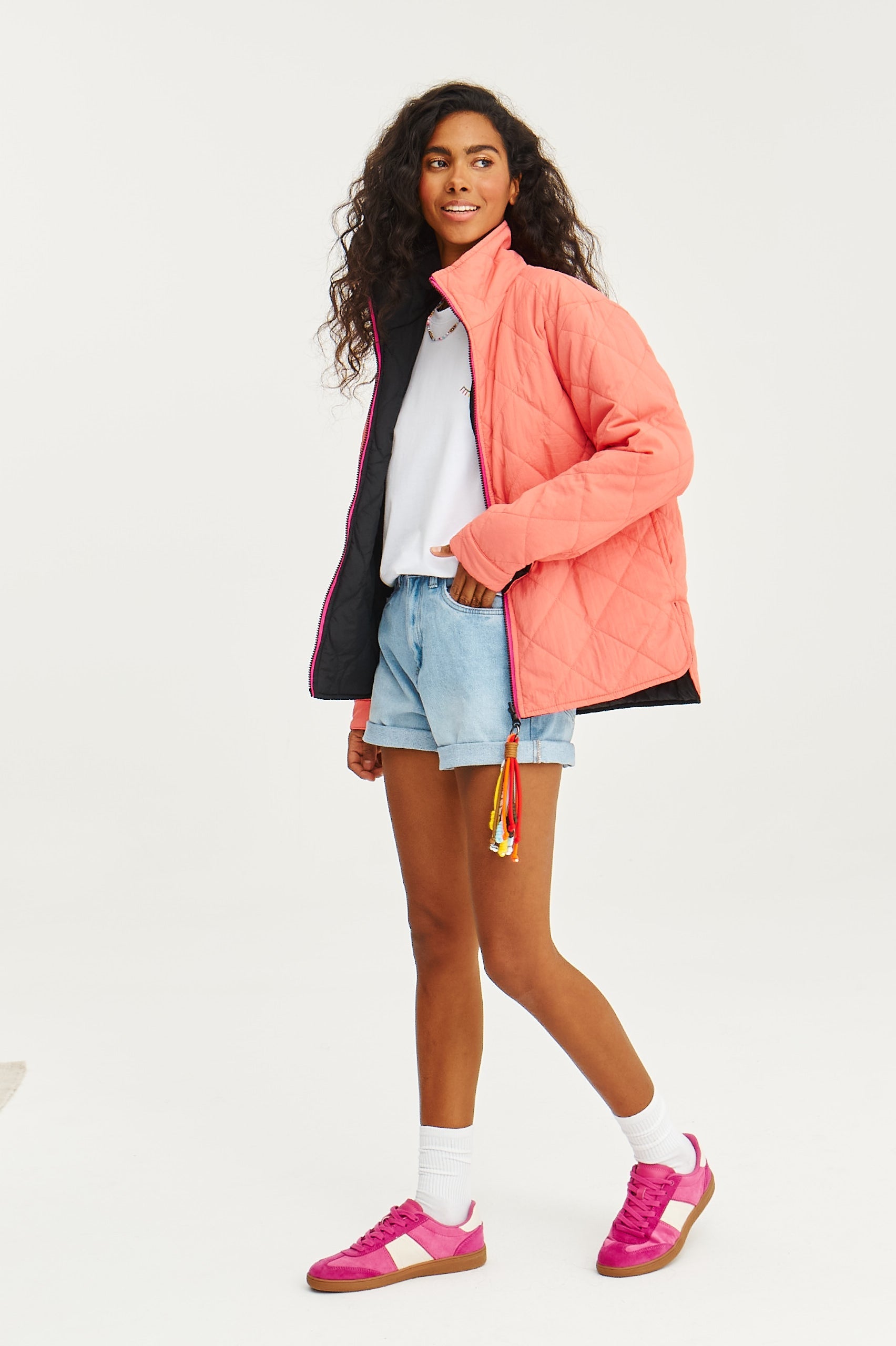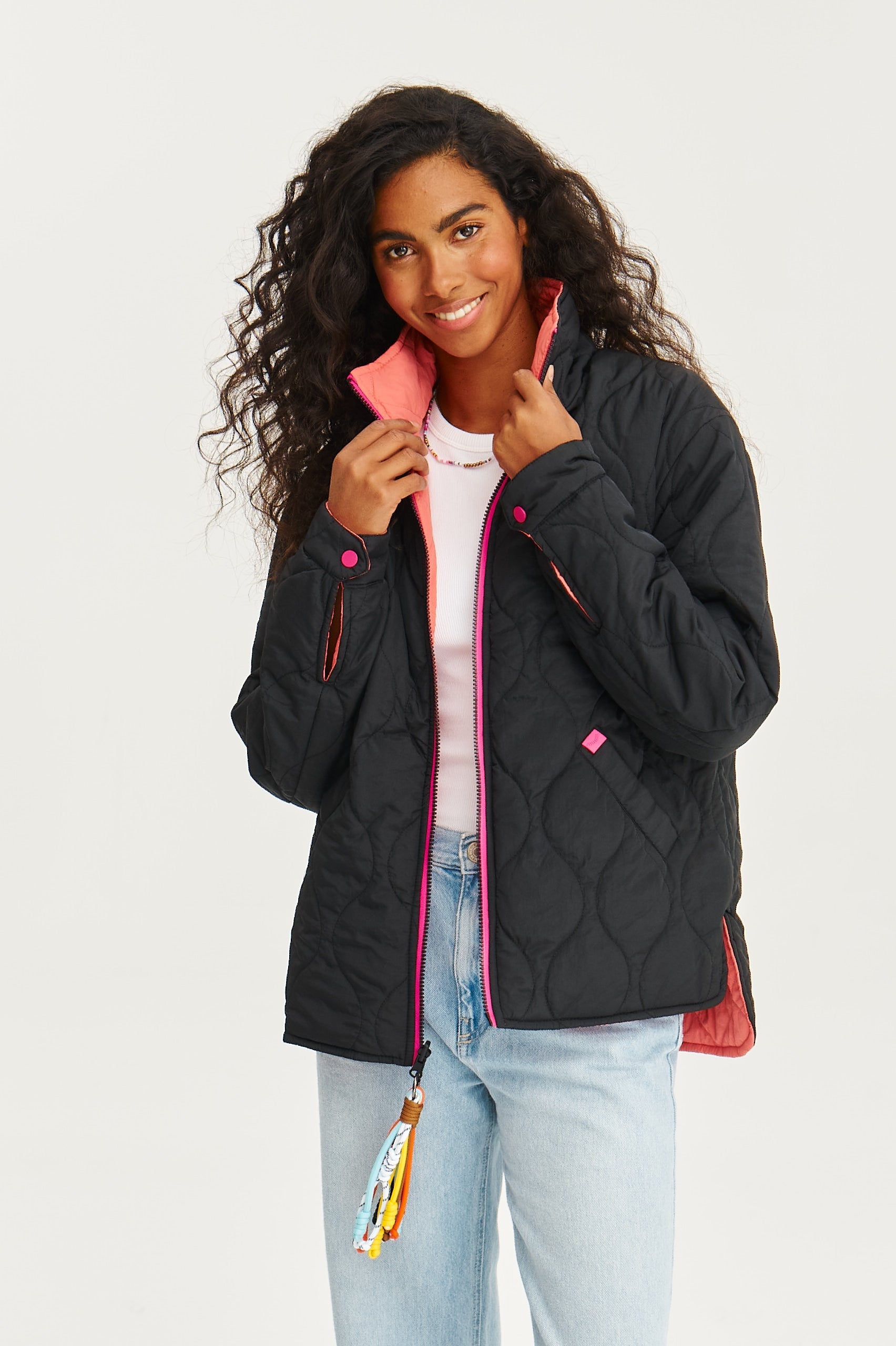 Obojstranná bunda Poppy Pink Thunder je kombináciou funkčnosti a módneho šmrncu. Na jednej strane klasická prešívaná čierna so subtílnymi detailmi, na druhej strane intenzívna ružová v energickom prevedení, ktorá púta pozornosť a dodáva charakter každému outfitu.